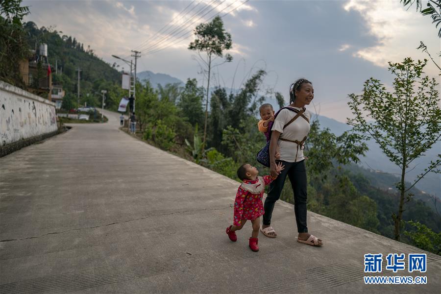 一名婦女領著孩子走在回家的路上(3月26日攝)。新華社記者江文耀攝