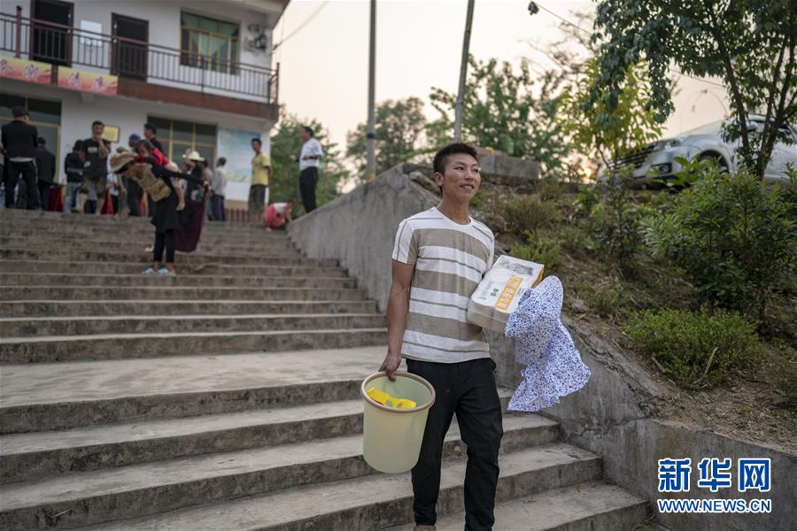 村民王九才在一個月一次的紅黑榜評比中獲得“五好村民”的榮譽(3月28日攝)。新華社記者江文耀攝