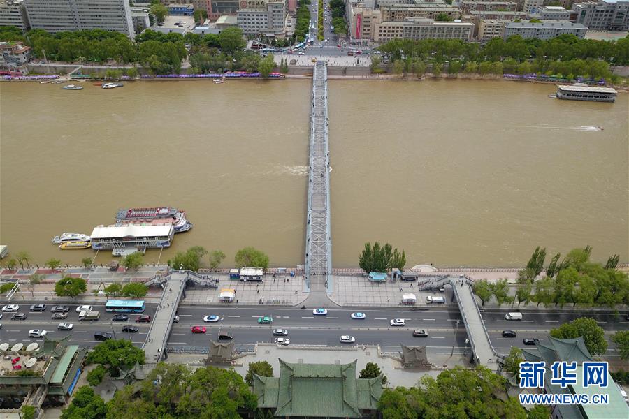 這是5月18日在蘭州市城關區(qū)拍攝的蘭州黃河鐵橋——中山橋及周邊初夏景象(無人機照片)。新華社記者范培珅攝