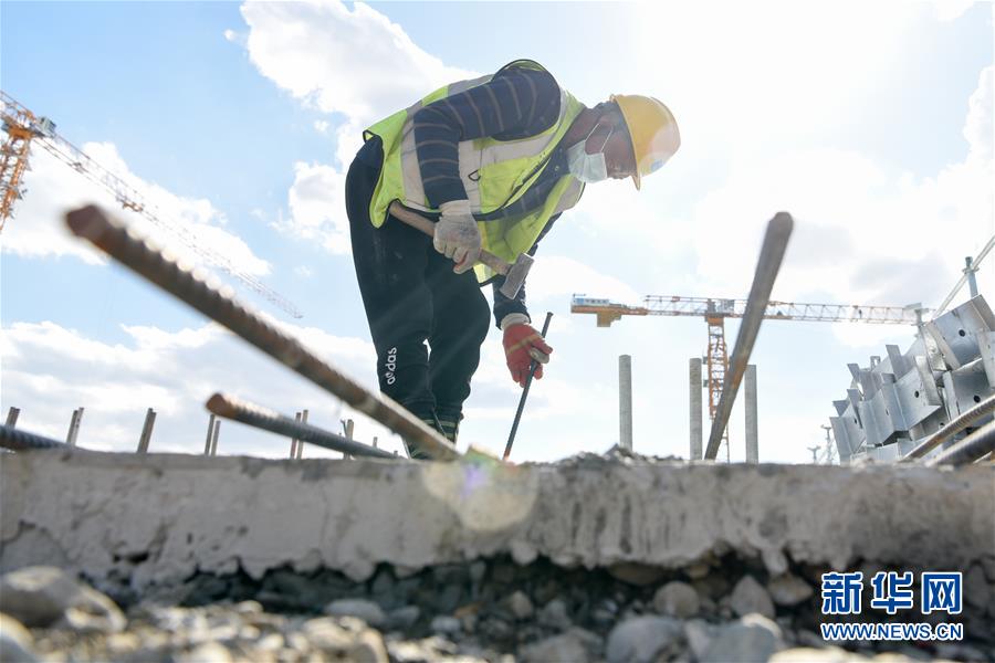 5月23日,工人在烏魯木齊機(jī)場(chǎng)改擴(kuò)建工程施工現(xiàn)場(chǎng)作業(yè)。新華社記者丁磊攝