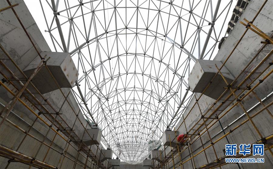 5月23日,工人在??谖拿鳀|越江通道項(xiàng)目江西段主線出入口施工。新華社記者楊冠宇攝