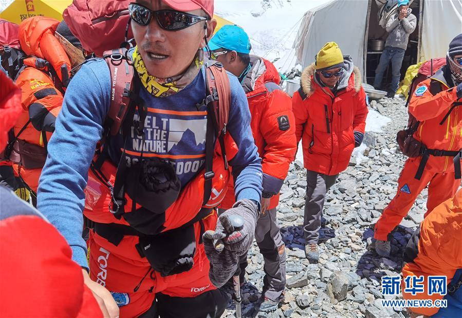 5月24日,2020珠峰高程測量登山隊部分人員從海拔6500米的前進(jìn)營地出發(fā)。新華社特約記者拉巴攝