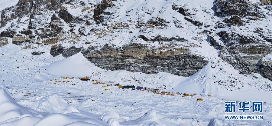于珠峰東絨布冰川旁海拔6500米的珠峰前進(jìn)營地(5月22日攝,手機(jī)照片)。新華社記者晉美多吉攝