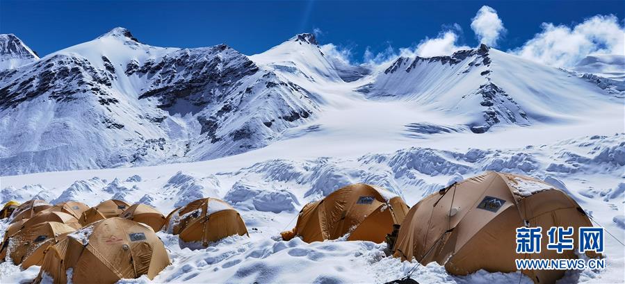 被大雪覆蓋的海拔6500米的珠峰前進(jìn)營(yíng)地(5月22日攝,手機(jī)照片)。新華社記者晉美多吉攝