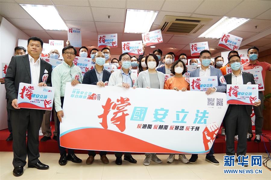 這是5月24日拍攝的香港各界“撐國安立法”聯(lián)合陣線簽名大行動(dòng)啟動(dòng)禮現(xiàn)場。新華社記者呂小煒攝