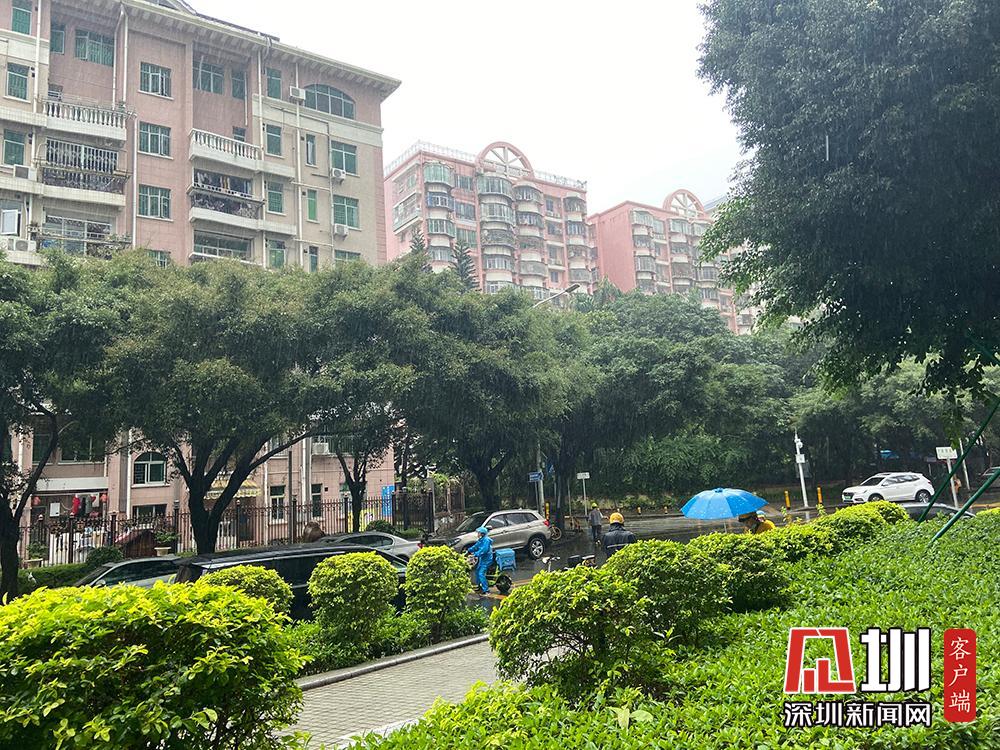 25日上午11時(shí)許,伴隨著雷聲,深圳市福田區(qū)開(kāi)始下雨。