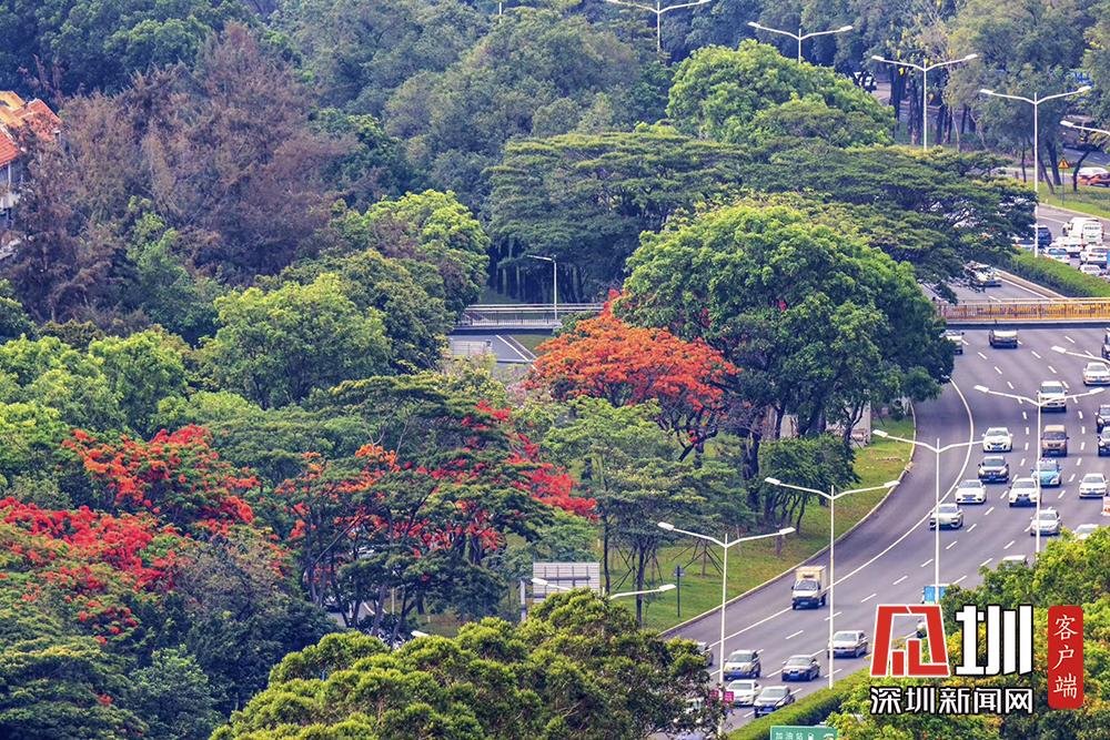 近日,深圳的鳳凰花進(jìn)入花期。TCL科技園內(nèi),隨處可見盛開的鳳凰花。徐捷攝
