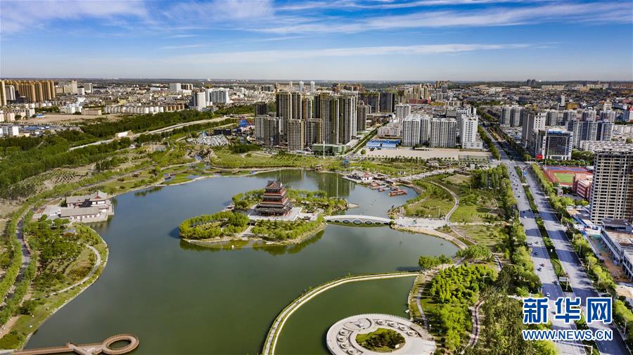 5月24日拍攝的榆林市河濱公園(無人機照片)。新華社記者陶明攝