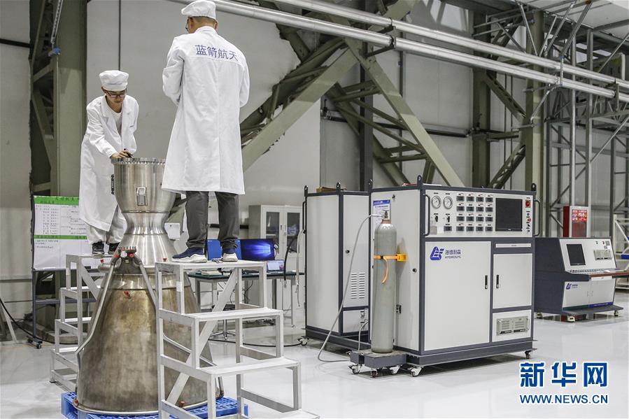 5月26日,工作人員在藍(lán)箭航天(湖州)智能制造基地發(fā)動(dòng)機(jī)裝配區(qū)進(jìn)行發(fā)動(dòng)機(jī)質(zhì)檢工作。新華社記者張玉薇攝