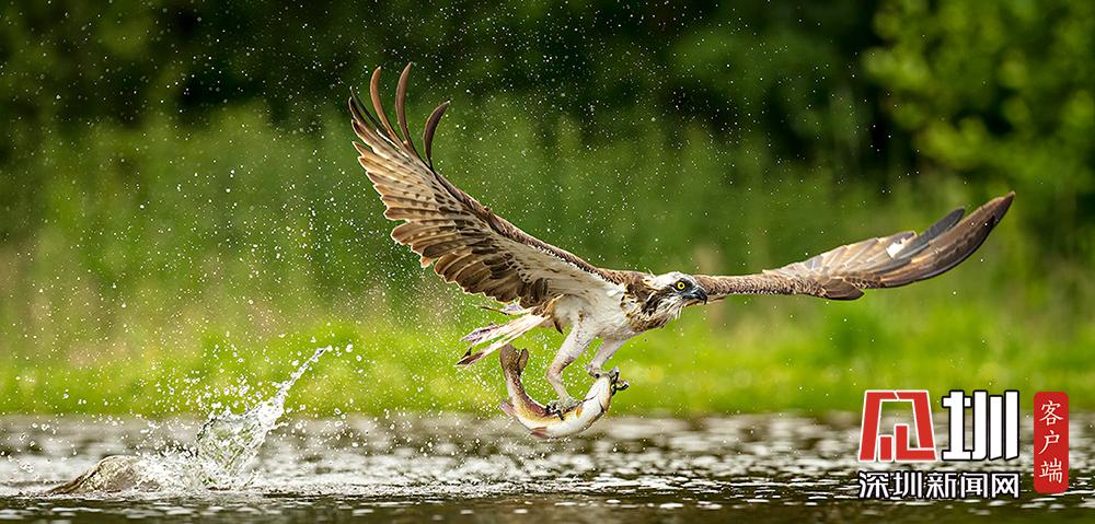 魚鷹俯沖入水捕魚 伺機而動“快準狠”