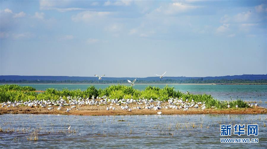 5月27日在陜西省神木市紅堿淖拍攝的遺鷗。陜西省神木市紅堿淖是中國最大的沙漠淡水湖,近年來隨著周邊生態(tài)環(huán)境改善,紅堿淖水位逐年提升,水域面積不斷擴(kuò)大,每年四至八月,都會(huì)吸引大批遺鷗來此繁衍棲息,已成為遺鷗繁殖的重要基地。新華社記者陶明攝