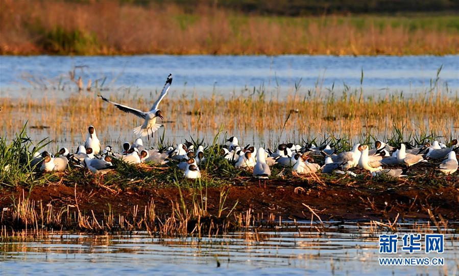 5月28日在陜西省神木市紅堿淖拍攝的遺鷗。陜西省神木市紅堿淖是中國(guó)最大的沙漠淡水湖,近年來(lái)隨著周邊生態(tài)環(huán)境改善,紅堿淖水位逐年提升,水域面積不斷擴(kuò)大,每年四至八月,都會(huì)吸引大批遺鷗來(lái)此繁衍棲息,已成為遺鷗繁殖的重要基地。新華社記者劉瀟攝