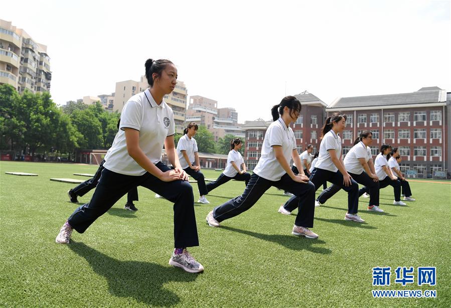 5月28日,北京市第十八中學(xué)初三年級的學(xué)生在體育課上做準(zhǔn)備活動。北京市第十八中學(xué)共有初三年級學(xué)生340余名,學(xué)校在做好初三年級學(xué)生中考文化課備考的同時(shí),加強(qiáng)學(xué)生心理及身體素質(zhì)的鍛煉,以最好的精神狀態(tài)備戰(zhàn)中考。據(jù)悉,2020年北京中考報(bào)名人數(shù)為7.5萬人,比去年增加25%。新華社記者任超攝
