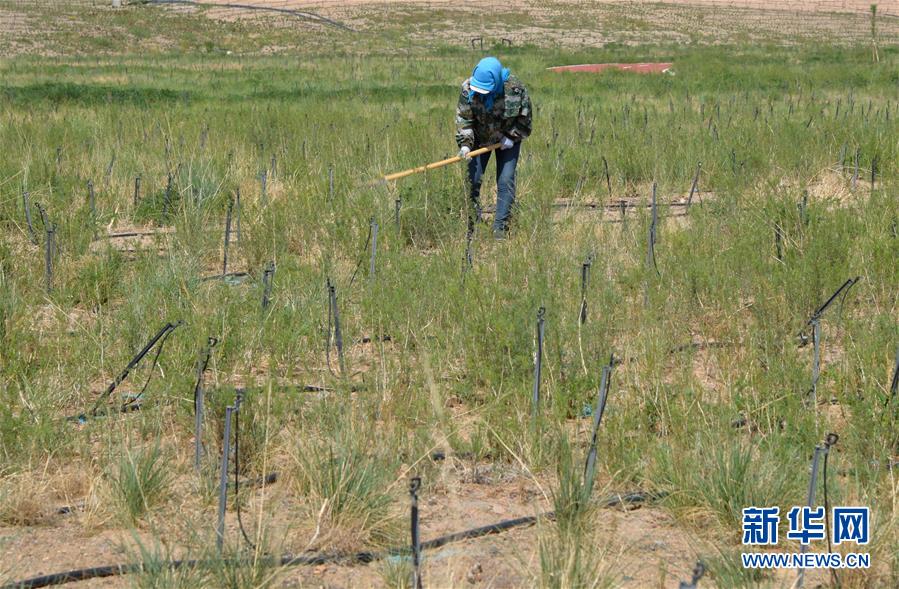 5月28日,工人在巴丹吉林鎮(zhèn)生態(tài)修復項目南部河道附近修理噴灌設(shè)備,以節(jié)約用水。2017年以來,內(nèi)蒙古阿拉善右旗在巴丹吉林鎮(zhèn)開展生態(tài)修復項目,種植適合在當?shù)厣L的馬蓮、紅柳等植物,修復生態(tài)的同時也起到美化作用。巴丹吉林鎮(zhèn)是巴丹吉林沙漠旅游景區(qū)的游客集散地,這里常年干旱少雨,水資源匱乏。新華社記者徐欽攝