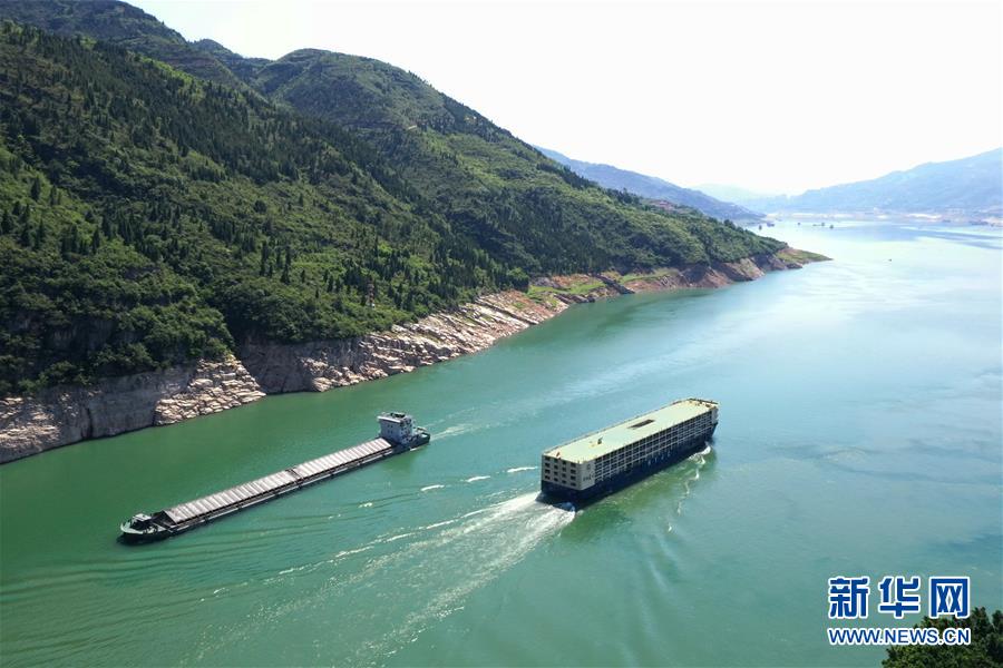 5月29日,船只在長(zhǎng)江瞿塘峽段江面上航行(無(wú)人機(jī)照片)。新華社記者王全超攝