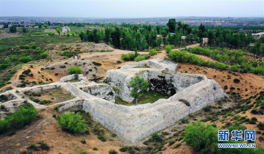 統(tǒng)萬城西門及甕城遺址(5月30日攝,無人機(jī)照片)。新華社記者劉瀟攝