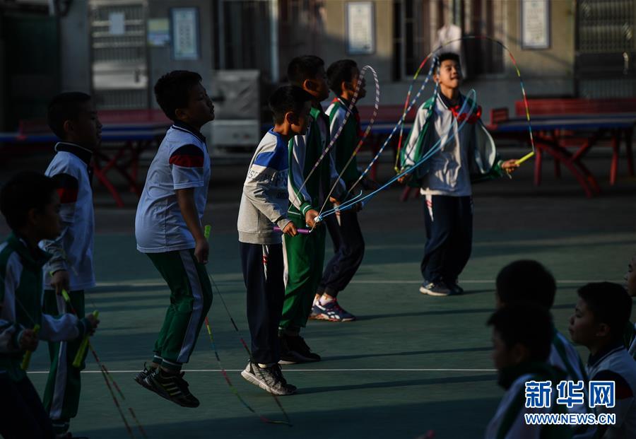 跳繩運(yùn)動(dòng)已經(jīng)深深融入七星小學(xué)的日常,放學(xué)后,孩子們都愿意在學(xué)校跳跳繩(2019年11月18日攝)。新華社記者劉大偉攝