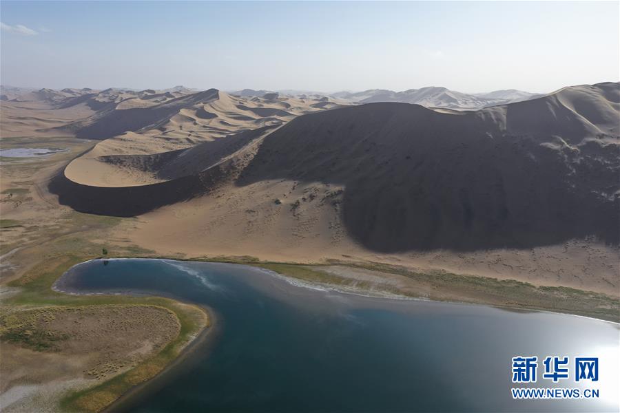 這是5月29日拍攝的巴丹吉林沙漠的諾爾圖湖(無人機(jī)照片)。新華社記者徐欽攝。