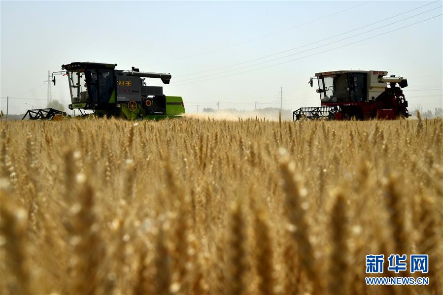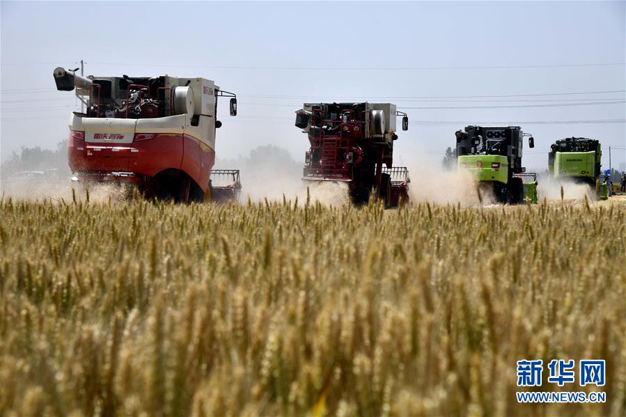 6月3日,在汶上縣郭倉鎮(zhèn),收割機(jī)在收獲小麥。目前,我國第二大小麥主產(chǎn)區(qū)山東6000多萬畝小麥進(jìn)入收獲階段。農(nóng)民們搶抓有利天氣,自南向北陸續(xù)開鐮。新華社記者郭緒雷攝。