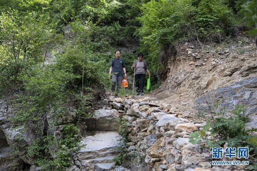 馬武寨寄宿制小學(xué)校長(zhǎng)趙金成(左)和語(yǔ)文老師崔連瑞前往南背村三姐弟的家(5月31日攝)。新華社記者楊晨光攝。