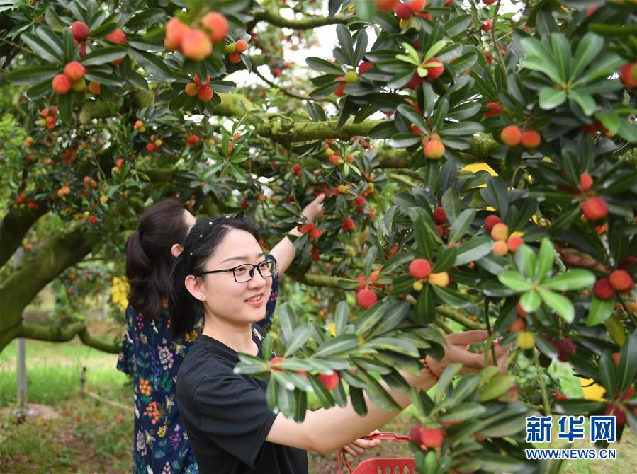 6月3日,果農(nóng)在上虞區(qū)驛亭鎮(zhèn)真山楊梅基地采摘。近日,浙江紹興上虞區(qū)二都楊梅開采。楊梅是上虞區(qū)傳統(tǒng)特色農(nóng)產(chǎn)品,目前上虞區(qū)二都楊梅種植面積1651公頃,年產(chǎn)量1.1萬噸,2019年二都楊梅成功申報(bào)國(guó)家農(nóng)產(chǎn)品地理標(biāo)志認(rèn)證。新華社記者翁忻旸攝。