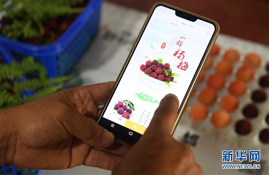 6月3日,在上虞區(qū)驛亭鎮(zhèn),舜利水晶楊梅專業(yè)合作社果農(nóng)在查看自己的電商平臺(tái)楊梅銷售頁(yè)面。近日,浙江紹興上虞區(qū)二都楊梅開采。楊梅是上虞區(qū)傳統(tǒng)特色農(nóng)產(chǎn)品,目前上虞區(qū)二都楊梅種植面積1651公頃,年產(chǎn)量1.1萬噸,2019年二都楊梅成功申報(bào)國(guó)家農(nóng)產(chǎn)品地理標(biāo)志認(rèn)證。新華社記者翁忻旸攝。