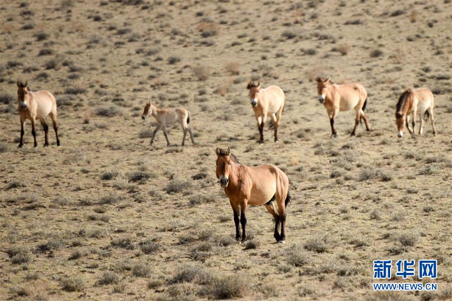 這是6月3日在新疆卡拉麥里山有蹄類野生動物自然保護(hù)區(qū)拍攝的普氏野馬。新華社記者丁磊攝。