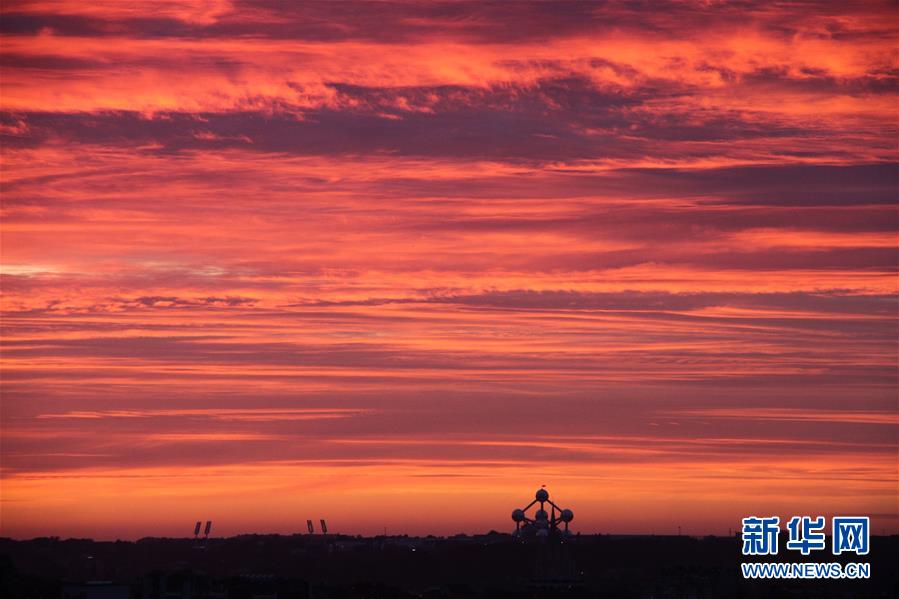 2020年5月22日黃昏時(shí)分,比利時(shí)首都布魯塞爾漫天的火燒云映襯著原子球塔。6月5日是第47個(gè)聯(lián)合國(guó)世界環(huán)境日,今年的主題為“關(guān)愛自然刻不容緩”。新華社記者鄭煥松攝。