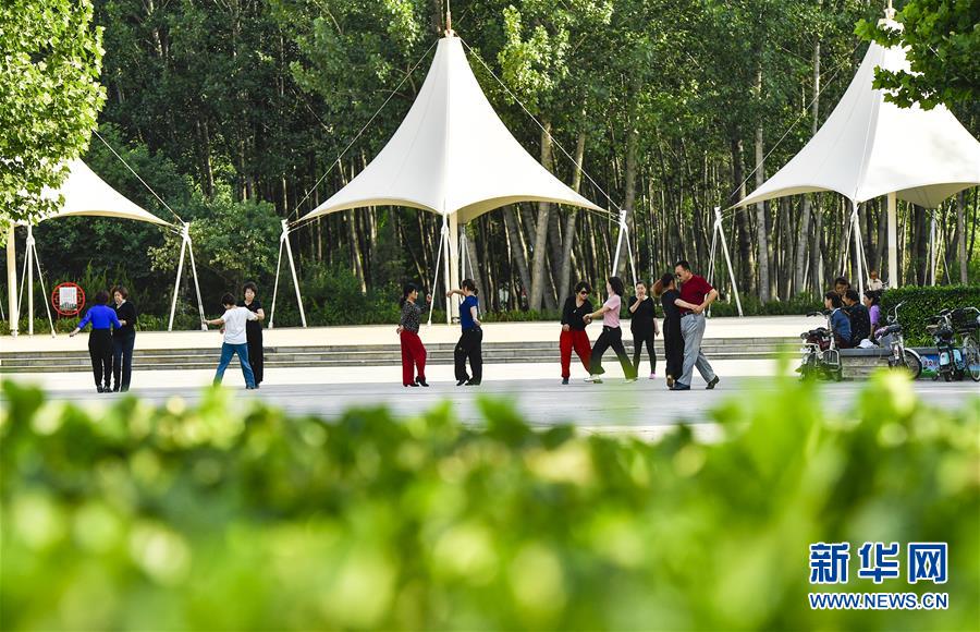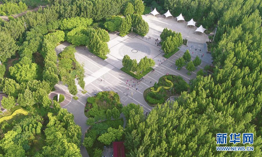 6月5日,市民在文安縣森林公園內(nèi)健身。近年來,河北省文安縣將植樹造林與城市建設(shè)有機融合,探索“政府引導(dǎo)、企業(yè)運作、多方共贏”的市場化植樹造林新模式,大規(guī)模推進國土綠化,打造人與自然和諧共生的優(yōu)美生態(tài)環(huán)境,構(gòu)筑京津雄綠色屏障。截至目前,該縣森林覆蓋率已經(jīng)達到33%,城區(qū)綠地面積達到36.48%。新華社記者李曉果攝。