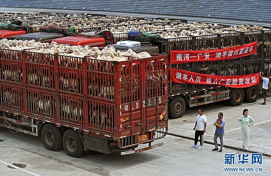 6月7日,裝運湖羊的貨車準備發(fā)車。當日,浙江省湖州市南潯區(qū)湖羊養(yǎng)殖場飼養(yǎng)的五千余頭湖羊啟程運往該區(qū)對口幫扶的四川省廣安市廣安區(qū)。2018年以來,南潯區(qū)依托湖羊養(yǎng)殖產(chǎn)業(yè)優(yōu)勢,積極實施“湖羊入川”和“湖羊致富”工程,向?qū)趲头龅貐^(qū)提供優(yōu)質(zhì)湖羊種羊和湖羊養(yǎng)殖技術(shù)指導。截至目前,南潯區(qū)已向廣安等地提供1.2萬余頭扶貧湖羊。新華社記者譚進攝