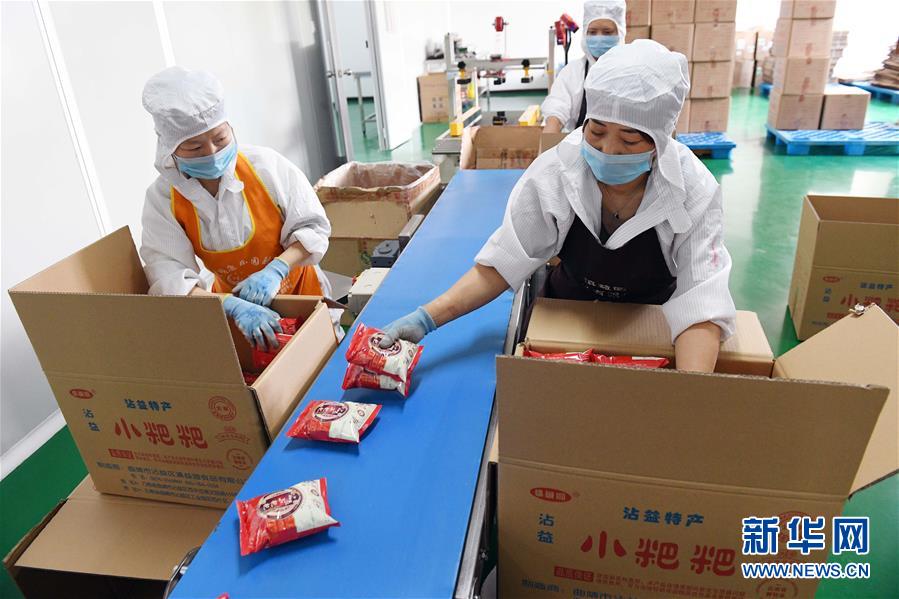 6月6日,云南曲靖市沾益區(qū)一家食品公司的工人在包裝沾益小粑粑。沾益小粑粑是云南省曲靖市沾益區(qū)一種獨(dú)具風(fēng)味的特色食品,采用優(yōu)質(zhì)上等食材,經(jīng)過20道工序精心制作而成,受到消費(fèi)者歡迎。沾益小粑粑產(chǎn)業(yè)也帶動當(dāng)?shù)剞r(nóng)民實(shí)現(xiàn)增收。新華社記者楊宗友攝