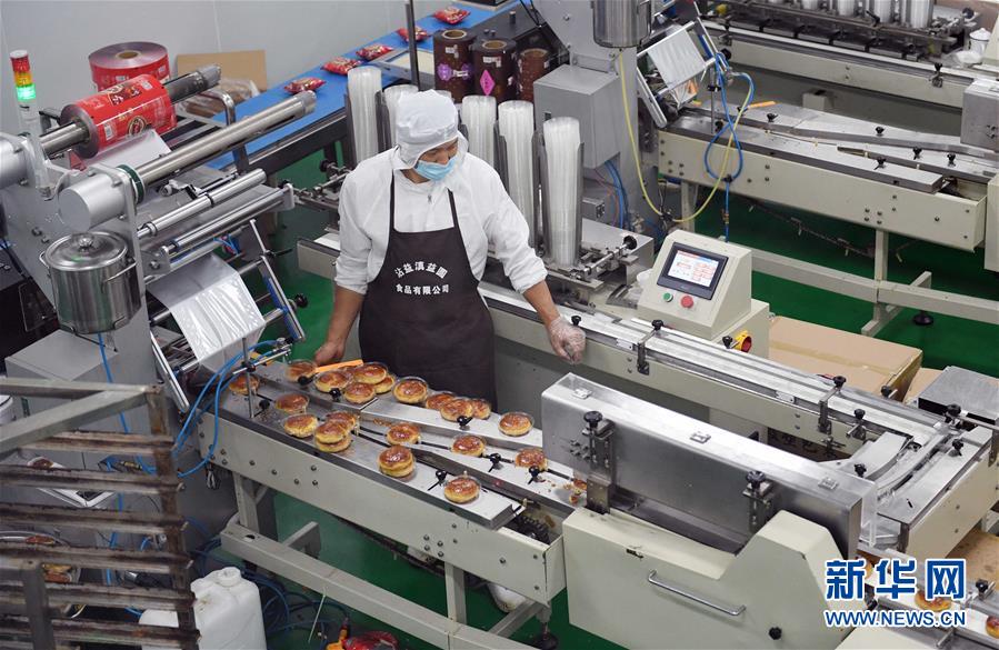 6月6日,云南曲靖市沾益區(qū)一家食品公司的工人在生產(chǎn)車間制作沾益小粑粑。沾益小粑粑是云南省曲靖市沾益區(qū)一種獨(dú)具風(fēng)味的特色食品,采用優(yōu)質(zhì)上等食材,經(jīng)過20道工序精心制作而成,受到消費(fèi)者歡迎。沾益小粑粑產(chǎn)業(yè)也帶動當(dāng)?shù)剞r(nóng)民實(shí)現(xiàn)增收。新華社記者楊宗友攝