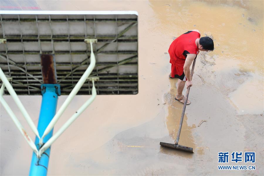 6月8日,在永州市江華瑤族自治縣白芒營鎮(zhèn)車下完全小學(xué),工作人員在校園里清淤。受近日持續(xù)強(qiáng)降雨影響,湖南省永州市江華瑤族自治縣發(fā)生洪澇災(zāi)害。6月8日,永州市江華瑤族自治縣白芒營鎮(zhèn)車下完全小學(xué)開展清淤、消毒工作,為6月9日恢復(fù)上課做準(zhǔn)備。新華社記者陳澤國攝