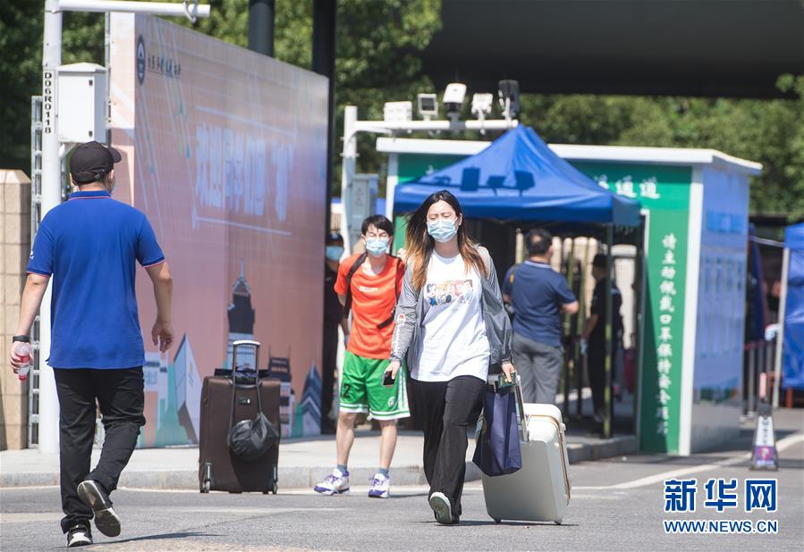 6月8日,在武漢大學,返校學生步入校園。6月8日起,武漢大學、華中科技大學、武漢理工大學、華中師范大學等多所武漢高校迎來首批返校畢業(yè)生。新華社記者肖藝九攝