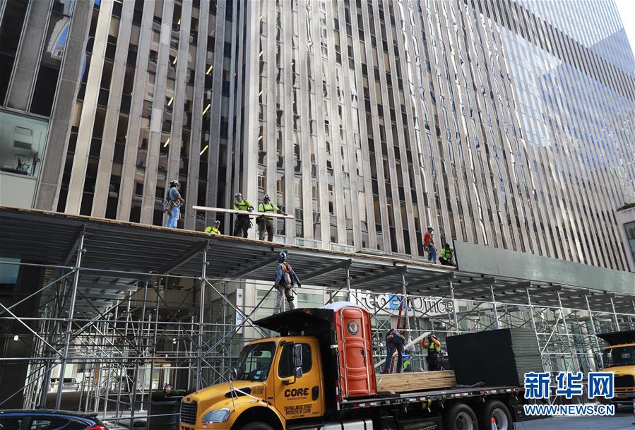 6月8日,工人在美國紐約的一處工地忙碌。在因新冠疫情進(jìn)入“居家令”近三個(gè)月之后,美國紐約市于當(dāng)?shù)貢r(shí)間8日開始“解封”,進(jìn)入經(jīng)濟(jì)重啟的第一階段。新華社記者王迎攝