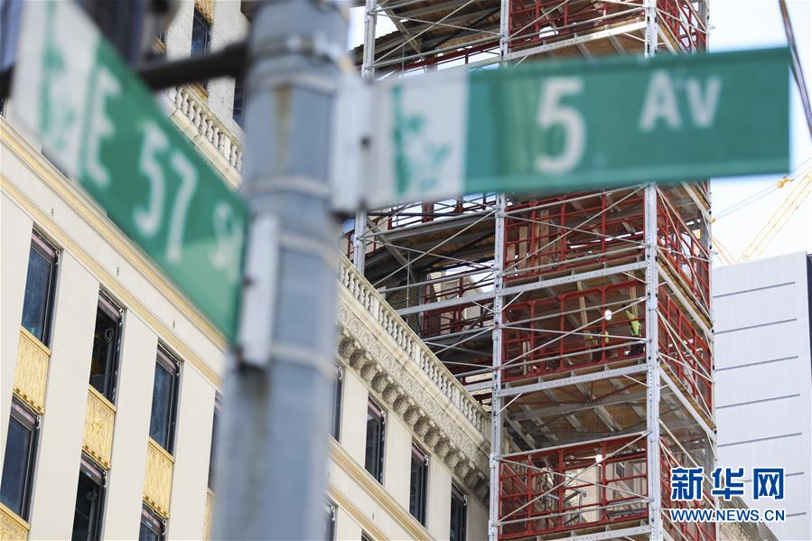 6月8日,工人在美國紐約的一處工地忙碌。在因新冠疫情進入“居家令”近三個月之后,美國紐約市于當(dāng)?shù)貢r間8日開始“解封”,進入經(jīng)濟重啟的第一階段。新華社記者王迎攝