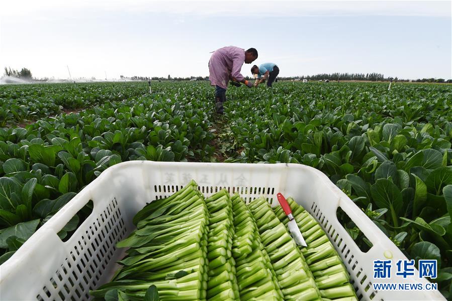 6月8日,粵港澳大灣區(qū)“菜籃子”(金昌)生產基地工作人員在采摘蔬菜。盛夏漸近,位于甘肅省金昌市金川區(qū)的粵港澳大灣區(qū)“菜籃子”(金昌)生產基地的多種蔬菜陸續(xù)豐收。該基地種植面積達1.3萬多畝,采用高效噴灌、精量播種等技術,以及“企業(yè)+合作社+基地+農戶”的模式,通過輪作倒茬、循環(huán)供應的方式,每年可種植蔬菜3至4茬,畝均產量2000公斤左右,總產值達1.5億元。新華社記者范培珅攝