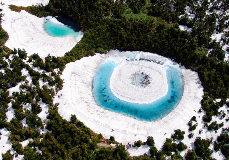 當(dāng)?shù)貢r間2020年6月8日,日本,在橫跨巖手縣與秋田縣的八幡平山頂附近的“鏡沼”,伴隨著“鏡沼”的積雪從外側(cè)逐漸融化,外圍的碧藍色湖水與中心部的潔白積雪相映成趣,呈現(xiàn)出獨特的類似“龍眼”的景象。據(jù)悉,八幡平“龍眼”奇景只在每年5月下旬至6月初的雪融期間短暫出現(xiàn)。