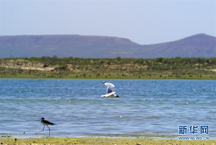 這是6月9日在泊江海子拍攝的黑翅長(zhǎng)腳鷸。近年來(lái),在當(dāng)?shù)卣亩喾N措施治理下,曾經(jīng)水面萎縮的內(nèi)蒙古自治區(qū)鄂爾多斯市境內(nèi)的泊江海子水量逐漸恢復(fù)。近期,包括遺鷗在內(nèi)的40多種鳥類來(lái)此棲息,泊江海子重新成為鳥類的樂(lè)園。新華社記者賈立君攝