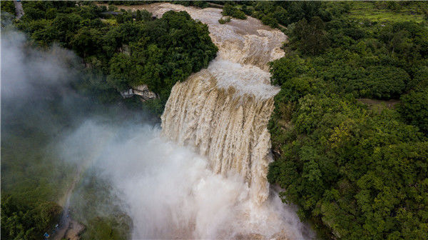 2019年6月12日,貴州省安順市黃果樹瀑布景區(qū)。(無(wú)人機(jī)航拍)