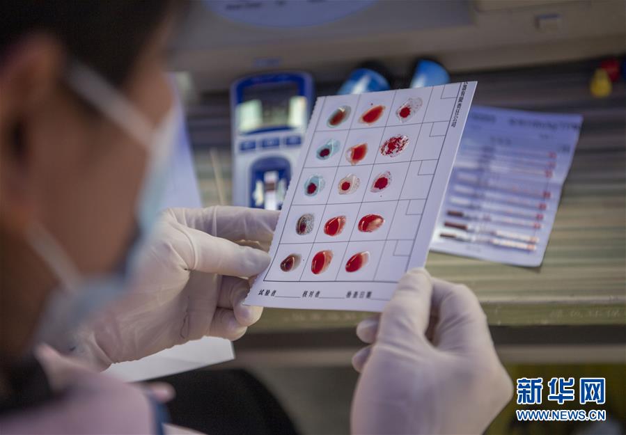 6月14日,在拉薩市宇拓路的獻血點,西藏自治區(qū)血液中心的工作人員在給獻血者的血液樣本進行血型檢測。當日是世界獻血者日。為宣傳無償獻血相關(guān)知識、傳播無償獻血公益理念,世界獻血者日宣傳和采血活動在拉薩市舉辦。新華社記者 孫非 攝