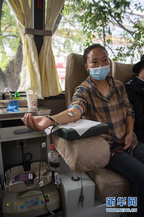 6月14日,在拉薩市宇拓路的獻血點,久美卓瑪在獻血。當日是世界獻血者日。為宣傳無償獻血相關(guān)知識、傳播無償獻血公益理念,世界獻血者日宣傳和采血活動在拉薩市舉辦。新華社記者 孫非 攝