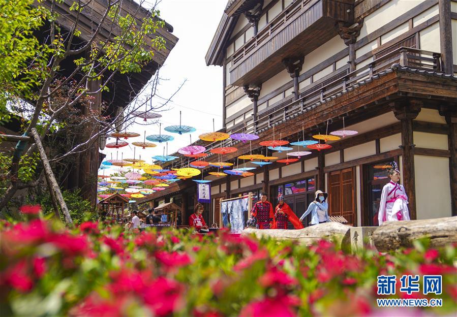6月13日,在長春市世茂蓮花山小鎮(zhèn)寬厚里商街,表演者身穿漢服、古裝進(jìn)行表演展示。當(dāng)日是“文化和自然遺產(chǎn)日”。吉林長春首屆蓮花山消夏生活節(jié)在世茂蓮花山小鎮(zhèn)舉行?;顒訉⒎沁z展示與假日消暑休閑相結(jié)合,讓游人在“古色古香”的油紙傘巷中品傳統(tǒng)文化魅力,享夏日休閑愜意。新華社記者 許暢 攝
