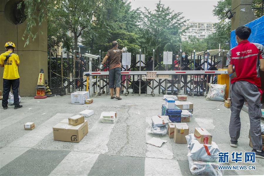 6月17日,快遞員在北京市西城區(qū)廣外街道朗琴園社區(qū)等待居民來取件。新華社記者 張玉薇 攝