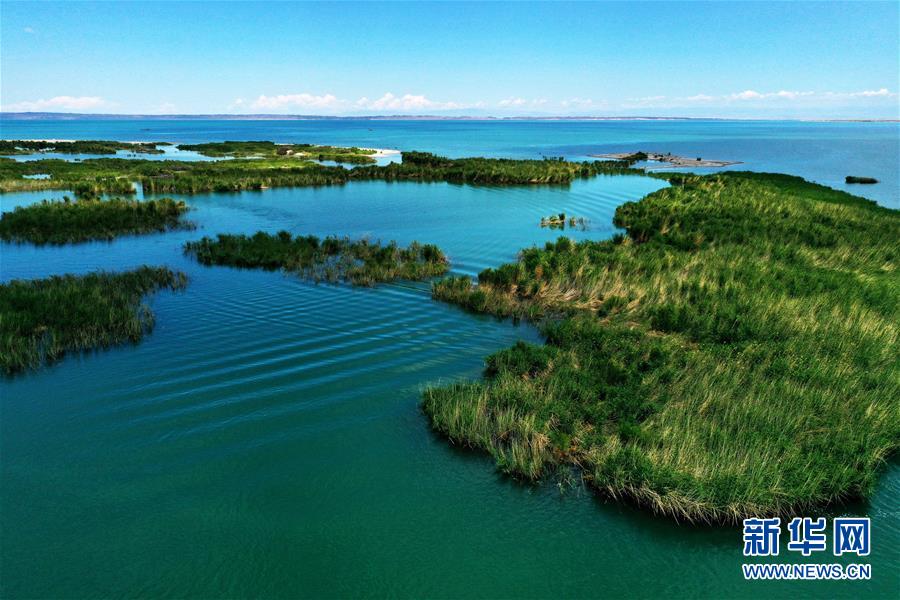 6月19日拍攝的新疆烏倫古湖國家濕地公園(無人機照片)。烏倫古湖國家濕地公園位于新疆阿勒泰地區(qū)福??h城以西,由烏倫古湖和吉力湖兩部分組成。烏倫古湖濕地公園是遷徙候鳥飛越天山和阿爾泰山的“能量補充站”,良好的濕地生態(tài)吸引著大量遷徙鳥類在此集結(jié)成群,繁殖棲息,成為一道靚麗的風景線。新華社記者 沙達提 攝