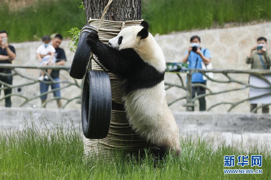 在位于四川省阿壩藏族羌族自治州的九寨溝大熊貓園,大熊貓“新新”在玩耍(6月19日攝)。新華社記者沈伯韓攝