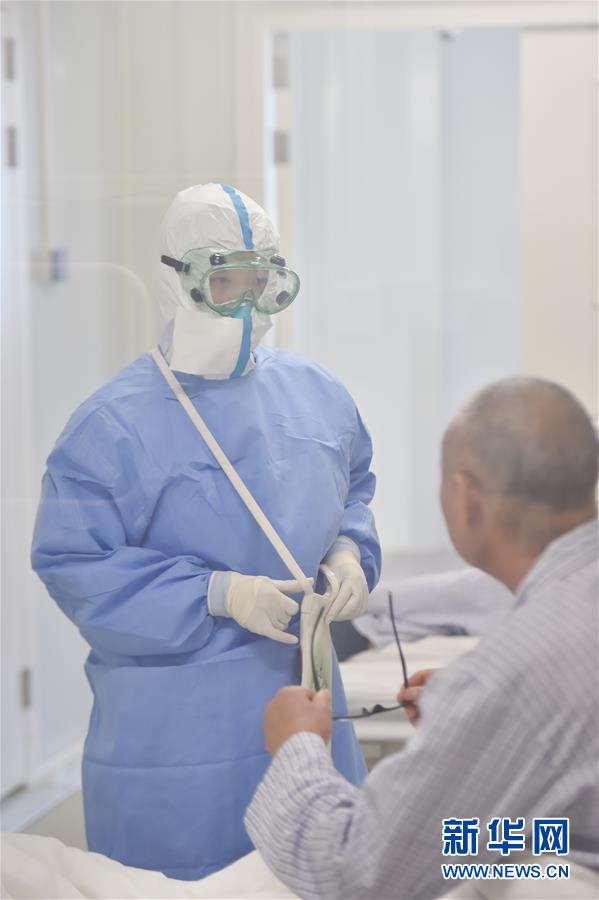 6月19日,在北京地壇醫(yī)院隔離病房?jī)?nèi),護(hù)士給新入住的病人做檢查。新華社記者彭子洋攝
