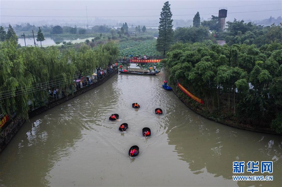 6月23日,東林鎮(zhèn)村民劃著菱桶采收荷花和蓮蓬。當(dāng)日,浙江省湖州市東林鎮(zhèn)在泉心村荷花池舉辦“慶端午劃菱桶”趣味活動(dòng)。村民們劃著菱桶在水面上你追我趕,同時(shí)采收荷花和蓮蓬,呈現(xiàn)出水鄉(xiāng)特有的端午節(jié)日氛圍。在河網(wǎng)密布的東林鎮(zhèn),菱桶是水鄉(xiāng)家家戶戶都有的一種傳統(tǒng)水上勞動(dòng)工具,村民在捕魚、采菱、采荷時(shí)都要用到。新華社記者徐昱攝