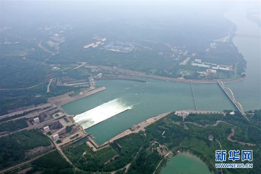 這是6月23日拍攝的黃河小浪底水利樞紐工程(無人機照片)。近日,黃河小浪底水利樞紐工程開啟洪水調(diào)度運用模式,從空中俯瞰,蔚為壯觀。新華社記者郝源攝
