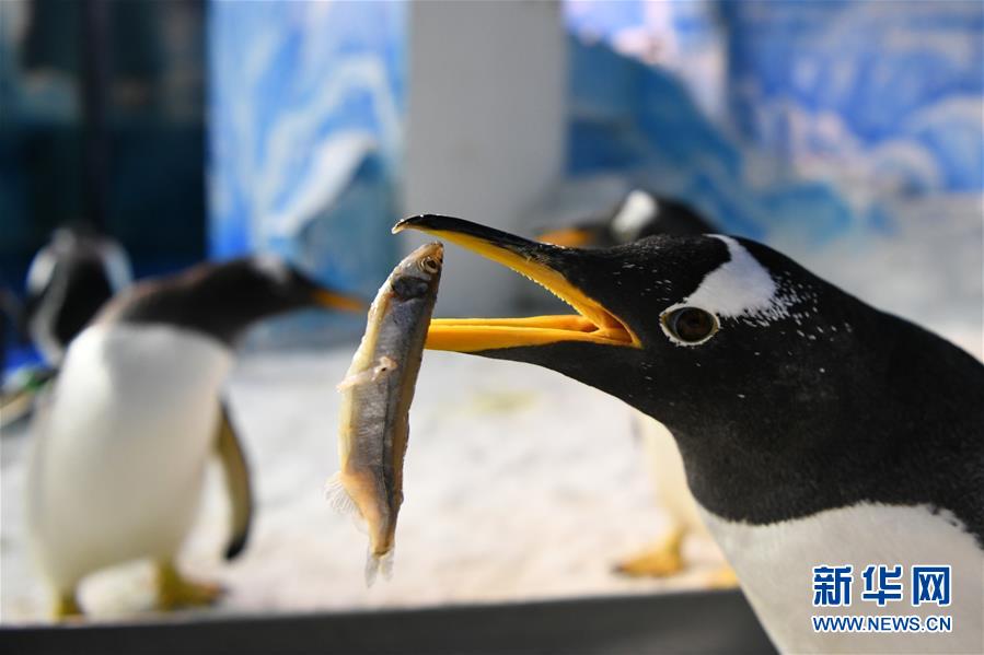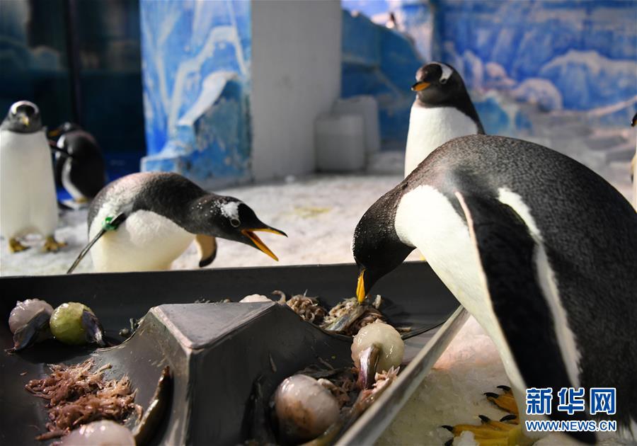 6月24日,哈爾濱極地館的企鵝在享用工作人員送來的美食。當(dāng)日,哈爾濱極地館的工作人員特地準(zhǔn)備了“魚粽”“肉粽”,讓生活在這里的極地動(dòng)物也品嘗一下端午美食。新華社記者王建威攝